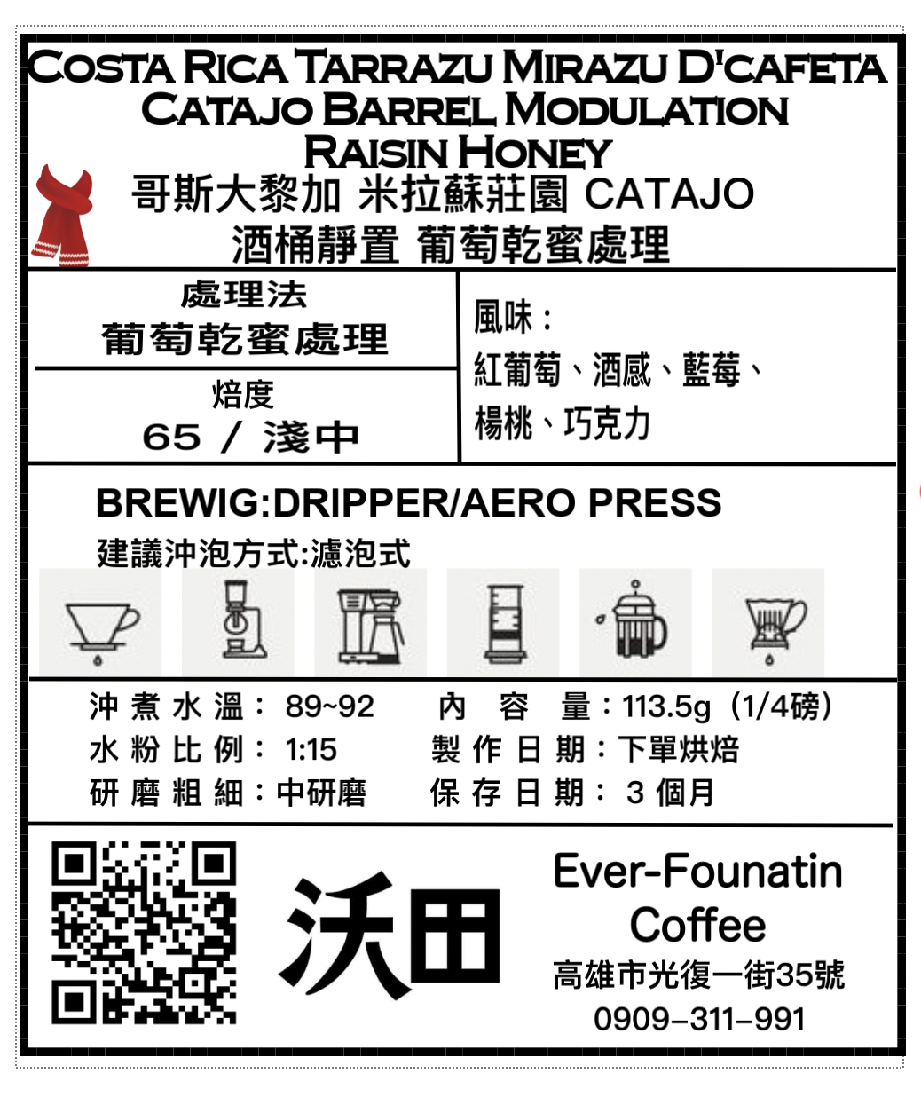 哥斯大黎加 米拉蘇莊園 CATAJO 酒桶靜置葡萄乾蜜處理